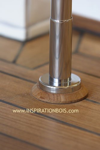 Détail de cadre de contour d'un parquet Teck en pont de bateau