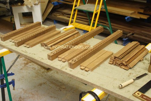 Fabrication des éléments de quatre portes à persiennes en Teck